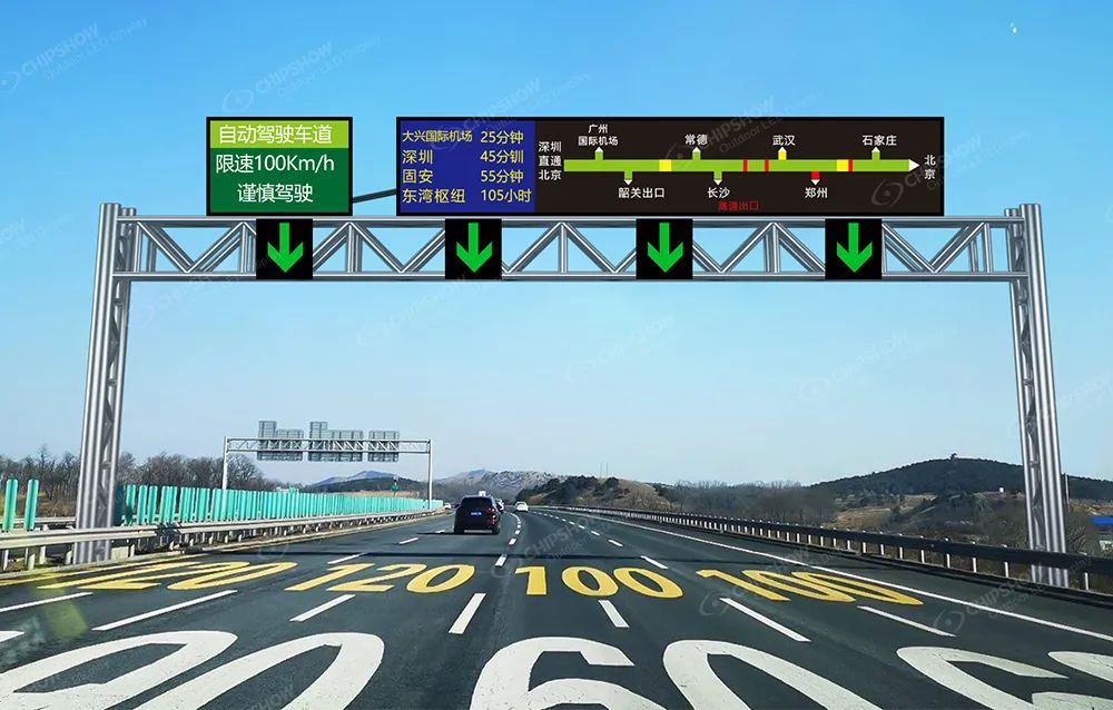 交通指示说的就是交通诱导屏,这类屏一般设在高速或城市道路,提供交通线路信息,如堵车,封路之类信息,指导车辆按规定路线行驶。