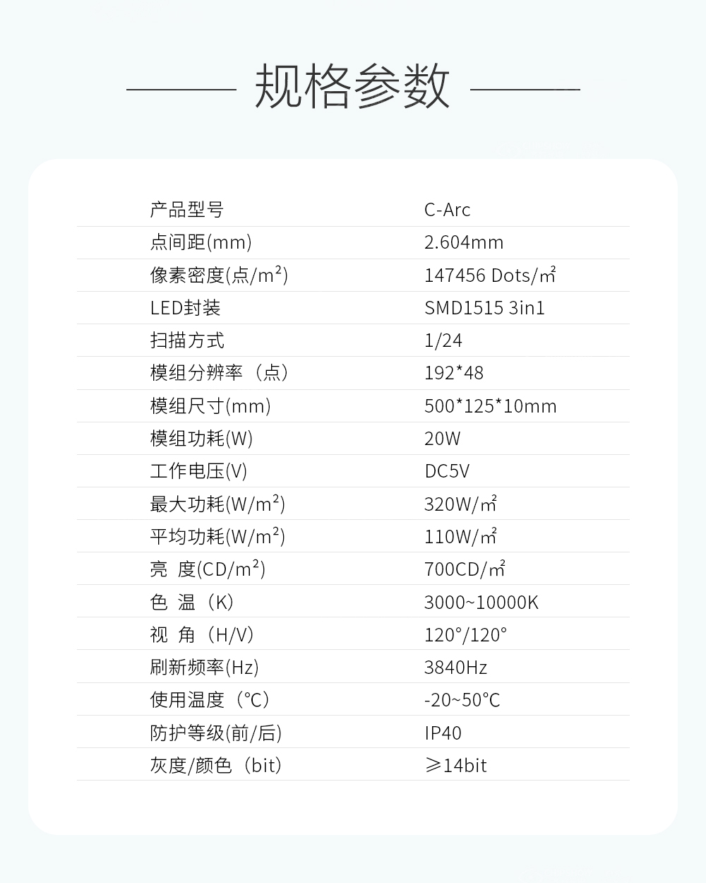 6 高清显示:色彩白平衡逐点校正,保证显示画面一致性和均匀性;