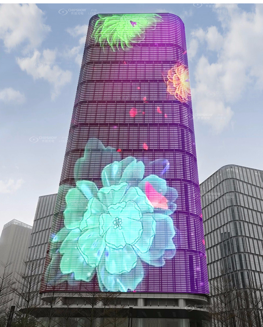 1. 高通透:不遮挡室内采光,25%通透度,玻璃幕变视频墙;